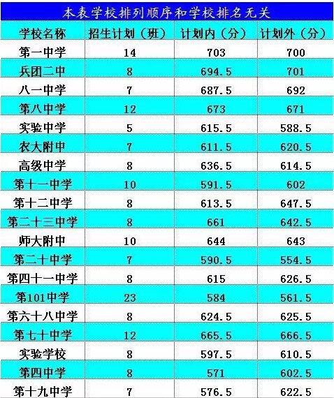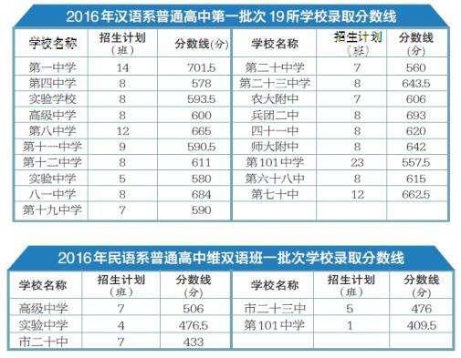 2015年乌市共有19所学校纳入一批录取(比2015年两所,即乌市十九中、乌市四中),他们的招生规模和录取分数分别如下。