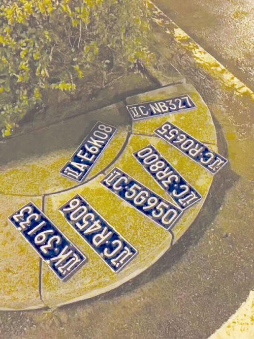 两名民警在千山东路火炬广场的泥污中,捡到7页机动车号牌。他们想,失主肯定还没有发现车牌照被大水冲掉,于是他们把捡到的号牌,摆在马路沿石上,拍了一张照片,发到微信群里,请丢失号牌的车主与刘警官联系,并公布了联系电话,请大家帮忙转发。
