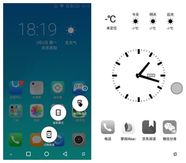 双模触控模式就更妙了。用户只需要选择该模式就可以将背面的水墨屏变身成为一块触控板,手指便可以通过在水墨屏上的滑动来实现手机背屏对主屏的操控,就如同用笔记本电脑的触控板操作,极大的提高了手机阅读的学习效率。