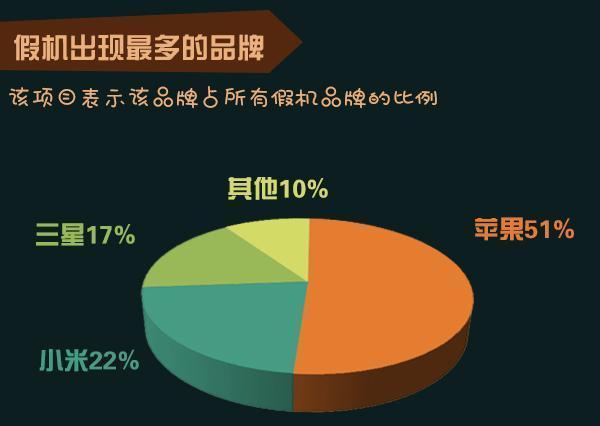 从假机品牌来看,这个数据就更有意思了。尤其苹果,光这个品牌的假机,就占了假机总数51%,超过了假机总数的一半。这个比例是相当吓人的。更重要的是,苹果的假机可以说从里假到外,硬件、系统、外壳没一处是真的。