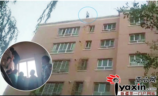 " 在市区某小区楼顶上有人要跳楼轻生。"6月8日傍晚,伊宁市公安局汉宾派出所接到报警,民警立即赶往现场。
