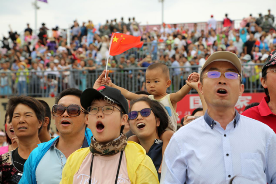 “五星红旗迎风飘扬,胜利歌声多么响亮;歌唱我们亲爱的祖国,从今走向繁荣富强。”大漠戈壁,烽烟又起,熟悉而又激动人心的合唱响彻8月5日的“国际军事比赛—2017”“晴空”防空导弹多能赛的赛场。据统计,约有1万5千名观众到现场观战,点燃了现场气氛。