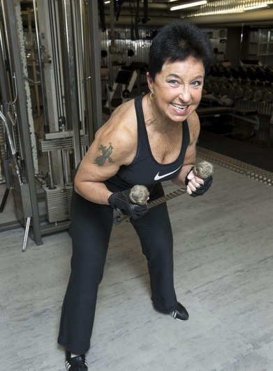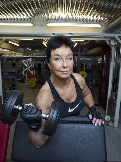 这位满身肌肉老太太名叫Wanja Sjodin,来自瑞典,今年80岁。对你没看错,就是80岁。