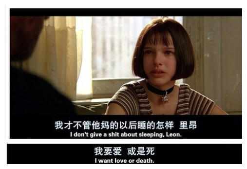《这个杀手不太冷》爱情表白:“我要爱,或是死。”使用说明:参照上条,否则这道选择题的答案是肯定的:“你去死吧!”