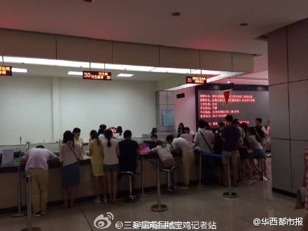 陕西宝鸡市渭滨区民政局婚姻登记处贴通知8月9日七夕只登记结婚不登记离婚。"前来办理结婚的人太多,两台电脑倒不开,所以暂停办离婚。