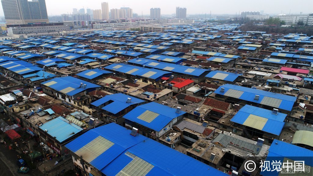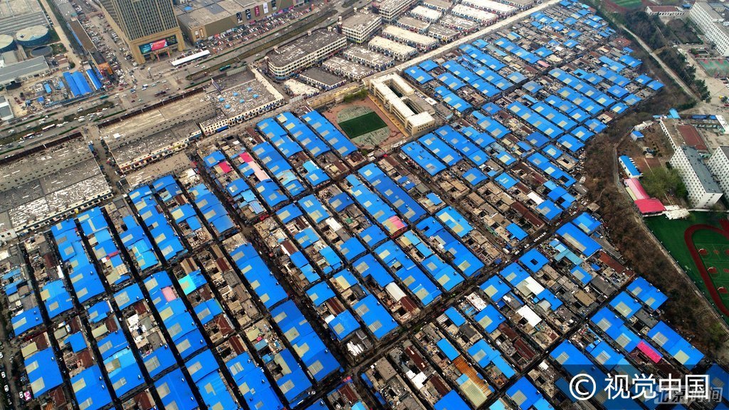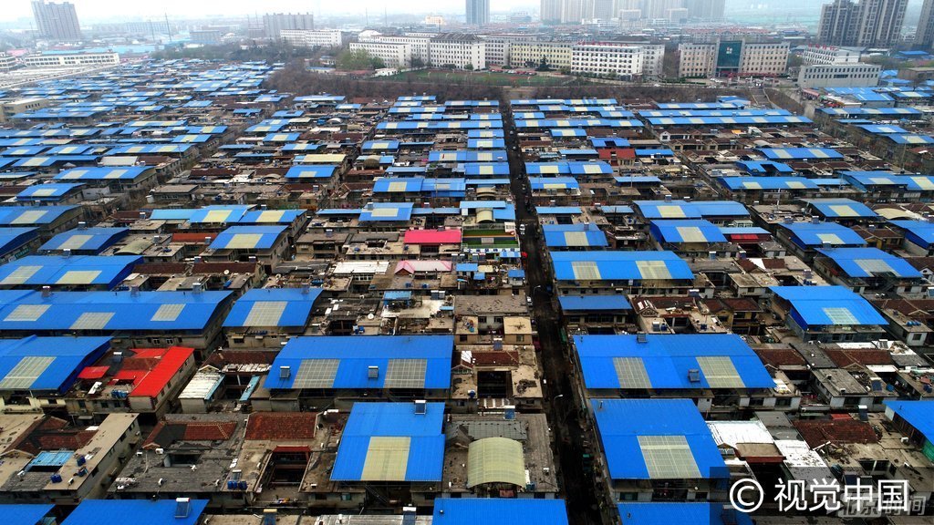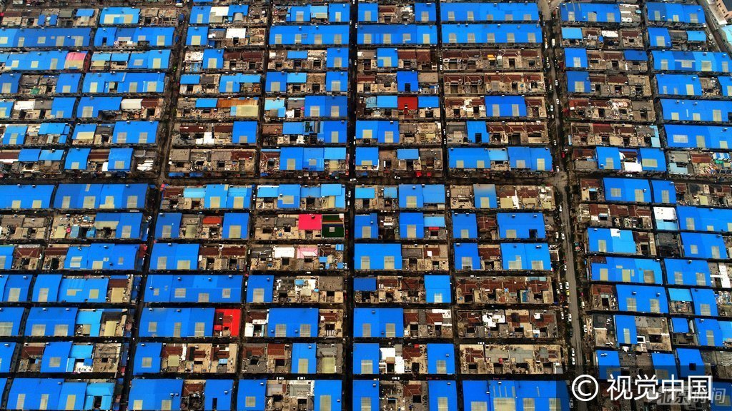 数百座二层小楼的顶部,居民自费安装了蓝色彩钢板和灰白色透明采光窗,用于防晒和防雨,从百米高空俯瞰,灰白相间的屋顶密密麻麻。