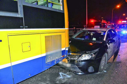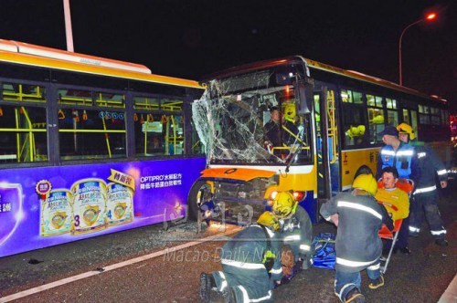 其中一巴士机件故障失控越过火线,迎头猛撞同一公司巴士,尾随的士收掣不及撞尾,故障巴士司机一度被困车厢,由消防员救出。