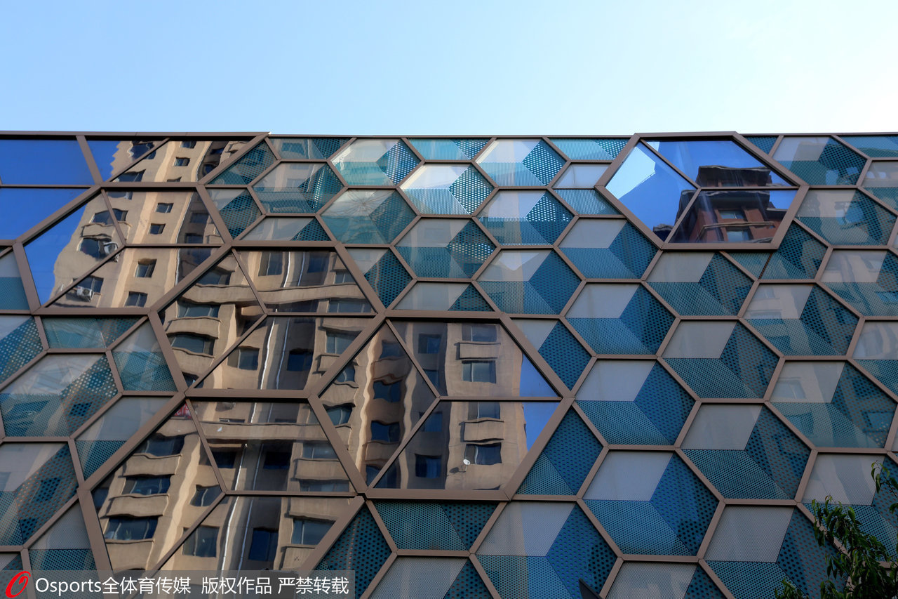 2017年5月9日,辽宁沈阳,沈阳市郊现山寨版“水立方”,墙体设计元素酷似国家游泳中心。