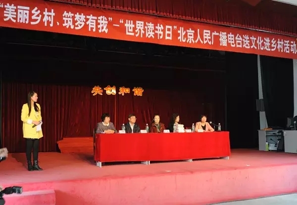 4月23日,“美丽乡村 筑梦有我”牵手主持人、北京电台总编室《广播之友》主播奕丹在电台总编辑王秋的带领下,与总编室主任孙巍和众多同事一道前往怀柔区杨宋镇花园村举办“美丽乡村 筑梦有我”—“世界读书日”北京电台送文化进乡村活动。