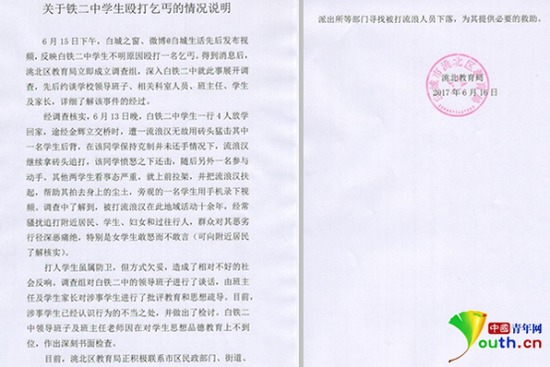 一乞丐因不明原因遭到学生殴打,来往车辆很多十分危险。这些学生边打边辱骂乞丐,并录下视频发到空间炫耀。