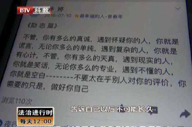 7月23日,北京电视台《法治进行时》栏目播出,根据群众举报,北京警方抓了一名自称“励志姐”的18岁失足女王某。