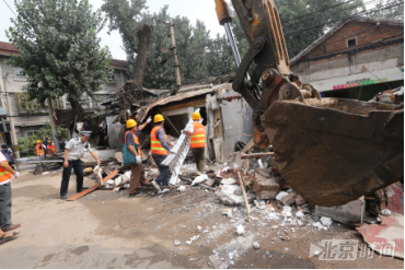 记者在拆违现场发现,几乎每一处违建都被商户作为了经营场所,民旺北胡同两侧“花里胡哨”的牌匾与周边的建筑颜色十分不搭,下水道沾满了油腻的厨余垃圾,公共垃圾桶上覆盖着厚腻的污垢,环境十分脏乱。