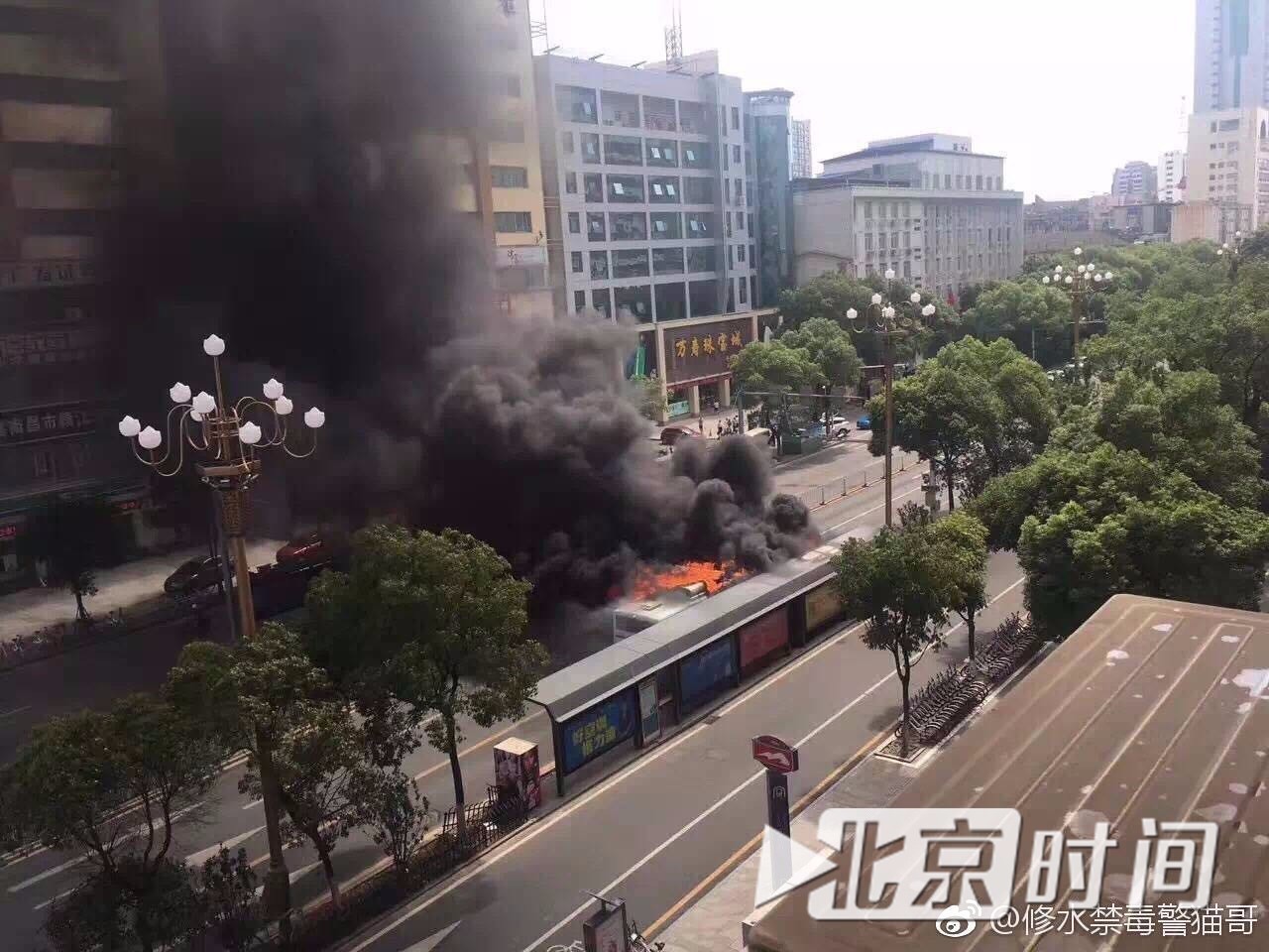 18日,在南昌市街头,一男子在13路公交车内纵火,纵火男子已死亡。在司机邓红英的冷静处理下,乘客、司机均无一人伤亡。