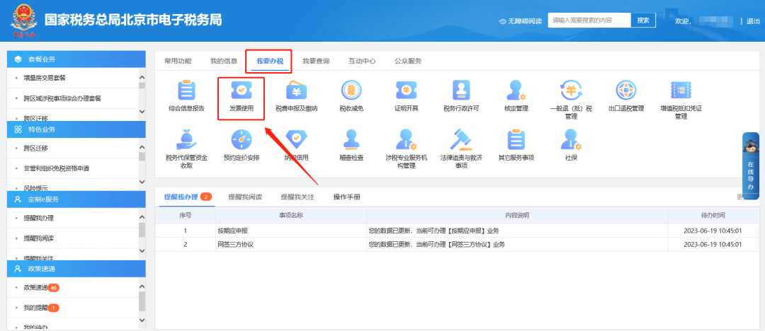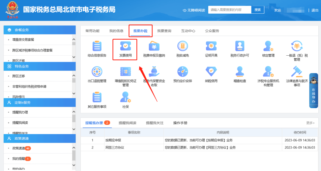 答:您好,请您点击【我要办税】—【发票使用】—【发票领用】—【票E送】点击“新增”按钮,填好信息保存、提交。如申领的纸质发票状态变成配送中,右侧操作栏中会出现“打印发票收票单”,打印盖章给快递员即可。若申领电子发票,提交成功后,请您点击票E送模块中的“结存信息查询”,结存中有新申领的电子发票号段说明申领成功。
