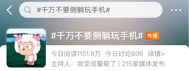 最近,一个#千万不要侧躺玩手机#的话题冲上了微博热搜,有网友表示,自己侧躺玩手机之后,眼睛的近视度数竟然加深了,甚至出现了斜视的情况。