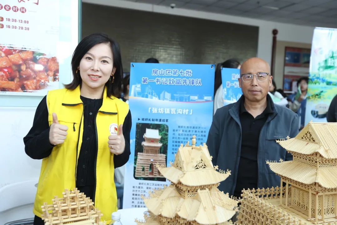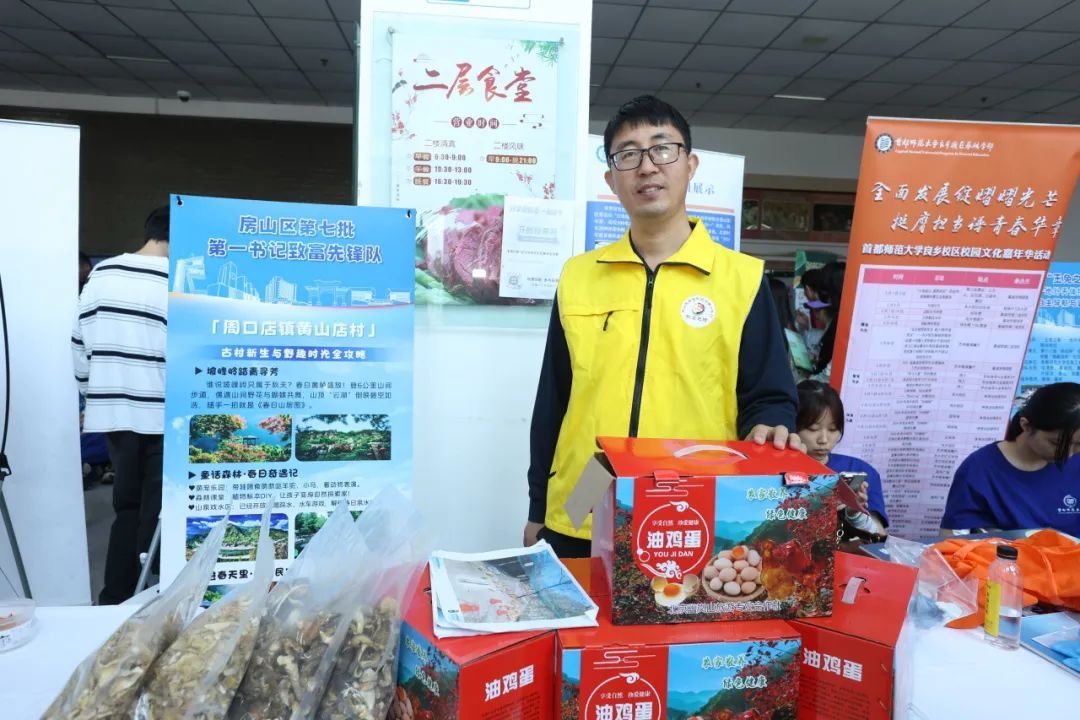 创意集市上,“驻村第一书记为房山代言”展区吸引不少大学生驻足观看。近20名第一书记现场宣传推介房山文旅资源、非遗文化、秸秆扎刻非遗技艺和山区特色农产品,通过集市现场搭建的“城乡资源对接桥梁”,把乡村好物从田间地头带到城市生活。
