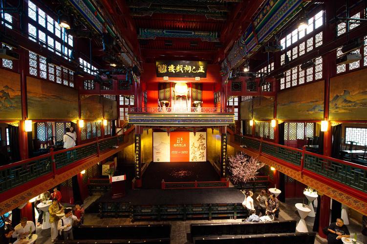 被誉为“中国戏楼活化石”的正乙祠,明代曾是一座寺院,清康熙初年由浙江在京的银号商人集资,建立祠堂馆舍,供奉财神赵公明,因此又被称为银号会馆。康熙五十一年(1712年)浙商对正乙祠进行扩建并加盖了戏楼。这座全木结构的戏楼今天依然可以用“气派”来形容,高三层,戏台三面开放,两层舞台之间开有方形孔道,设吊钩,演出神怪戏时用来制造特效。上世纪30年代,谭鑫培、梅兰芳、王瑶卿等名角儿,都曾在这里登台,见证了正乙祠最辉煌的岁月。
