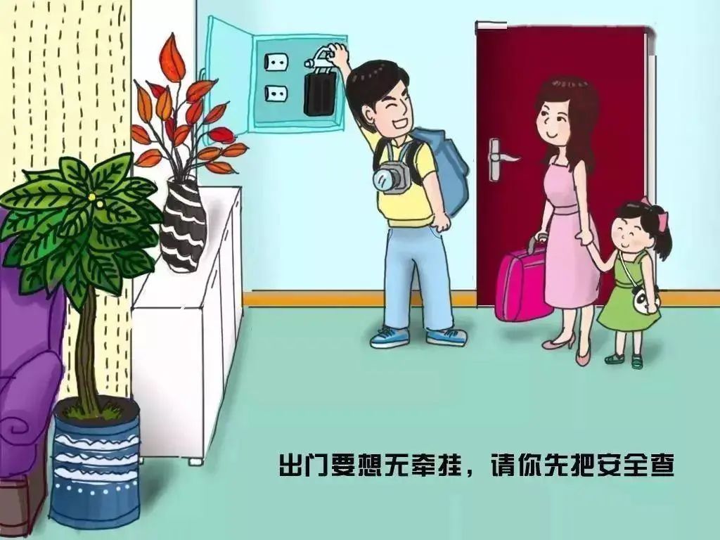 正确使用各种家用电器,选择安全可靠的电源开关,出门前关闭电源。