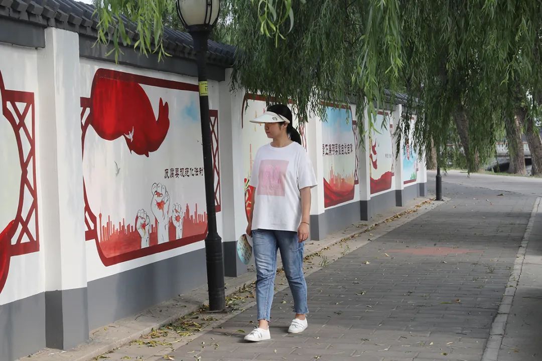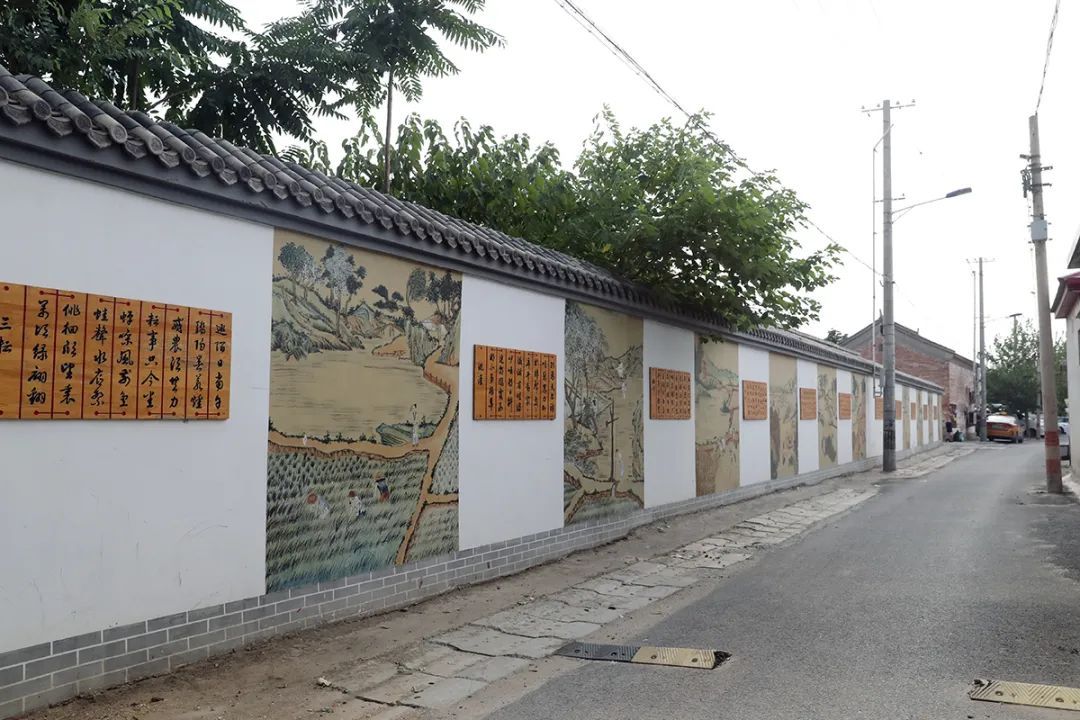 荷花池的一旁是箭杆河,由北向南流淌而过,河水清澈,微风拂过,泛起微微波纹,岸边的柳树倒映在河面上。岸上是廉政文化墙,记者看到,“张君为政,乐不可支”“乘折辕车”“有公德乃大,无私品自高”等典故述说着从古至今的廉政文化传统美德。记者一路向东,看到一条长200余米的美丽街巷,《耕图二十一首》描绘的耕种场景跃然墙面,将村民带入到古代农耕文明当中。
