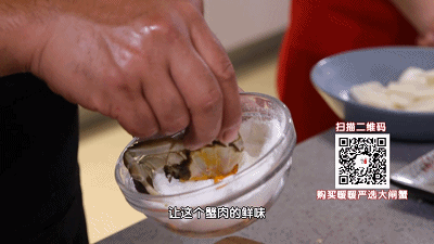 螃蟹切口处均匀沾上一层淀粉,起到锁住鲜味的作用。