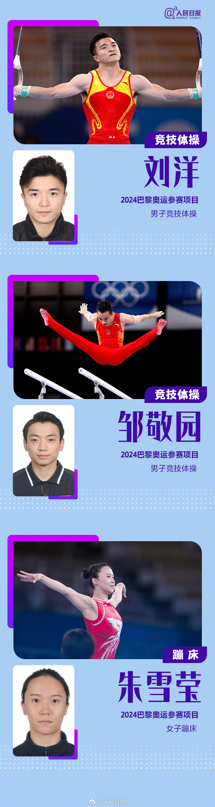 巴黎奥运会中国体育代表团共405位运动员,包括42名奥运冠军。巩立姣、马龙、汪顺、朱婷、孙颖莎、全红婵……不论是五战奥运的老将,还是冲劲十足的新人,这个夏天,他们将为中国军团续写辉煌。