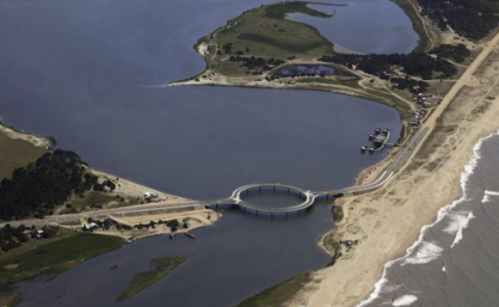 拉古纳加尔松桥横跨乌拉圭南部海岸的泻湖之上,它于2015年12月正式通车运营,自竣工以来,这座大桥就凭借极其不寻常的圆形吸睛无数。