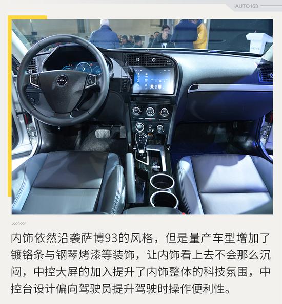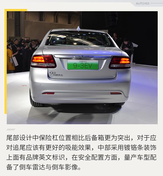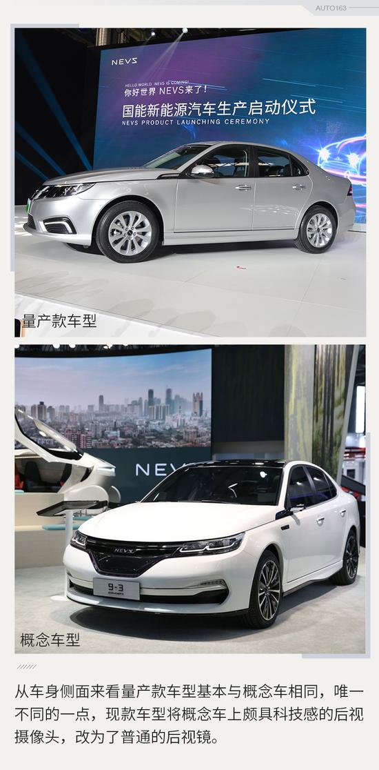 该量产车型外形基于NEVS 9-3 Concept概念车打造而来,其中能看出明显的萨博93的影子,但是细节上有些许改动,比如增加了新能源装饰,增加了全新的LED日间行车灯,看上去比老的萨博93更加的现代化。