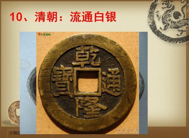 (1)先秦:商朝人善于经商,以贝为币;战国时期,各国出现了铁钱,秦国使用圆形方孔钱,称半两钱(齐国使用刀形币,赵国使用铲形币,楚国使用蚁鼻形币).