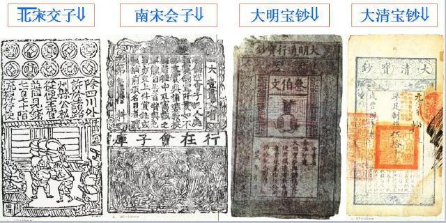 (5)宋元:北宋时在四川地区出现了世界上最早的纸币"交子".由金属货币发展到纸币,是社会经济发展的必然结果.纸币的推广,减轻了商人携带金属货币的负担,有利于商品交换,反映了商业的高度发展.