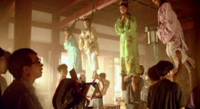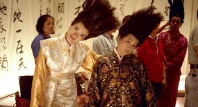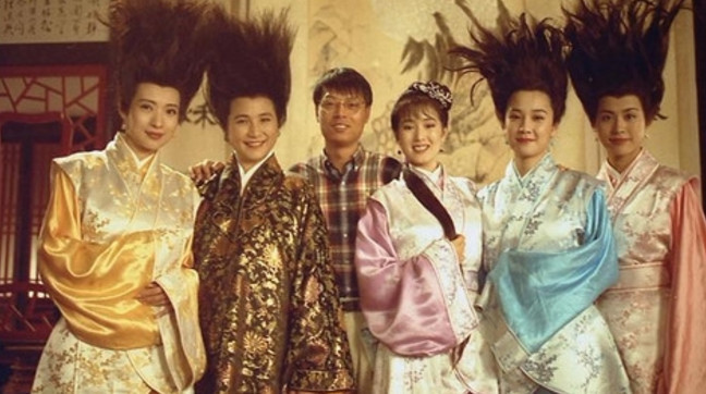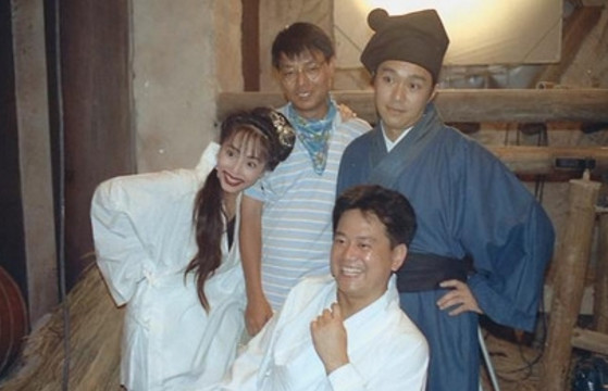 影片中,周星驰扮演的唐伯虎放荡不羁,巩俐扮演的秋香温婉贤淑,还有风骚献媚的石榴姐以及江南四大才子的其(周星驰、石榴姐、祝枝山和导演一起的合影)