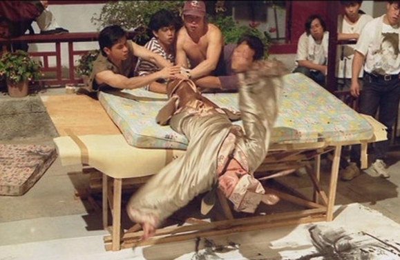 当年周星驰和巩俐出演的时候都还风华正茂,周星驰年轻有为,巩俐已经成长为大牌实力演员。余三大才子,他们都发挥了自己的最大幽默细胞。(图为周星驰和李力持交流)