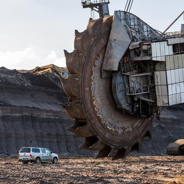 德国克虏伯Bagger自走挖掘机是德国克虏伯公司(后与蒂森公司合并组成蒂森克虏伯集团)设计制造的大型露天挖掘机,Bagger自走挖掘机以其超大的外形和无可比拟的工作能力成为世界上最著名的大型机械设备之一。图为主体部分之一,宛如钢铁浇筑的大楼。
