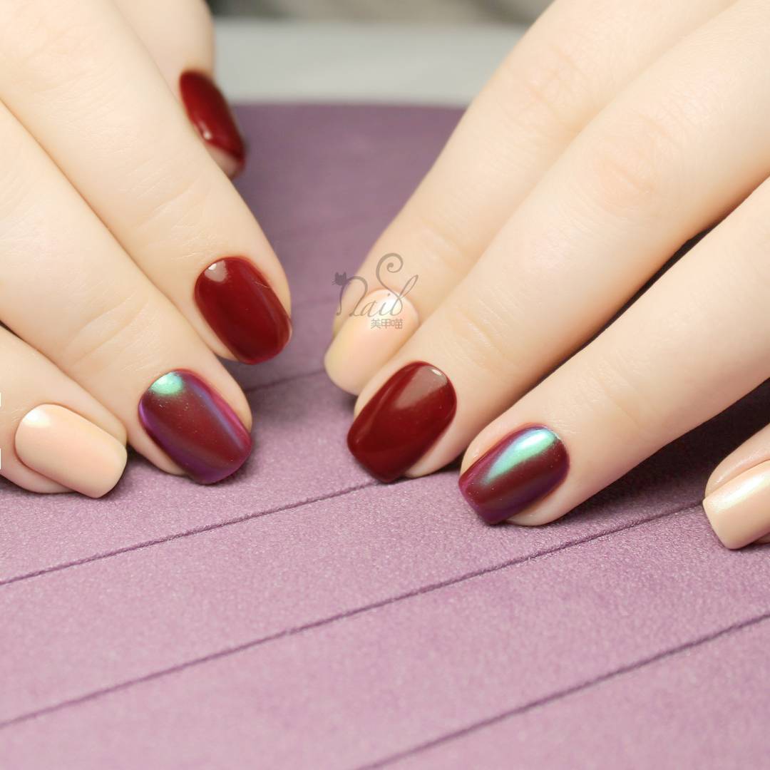 可算是纯色时尚的典范了,除了保留纯色时尚一贯的简约格调外,还多了些许高级感。在众多的美甲款式中,它无疑是最受欢迎的一种。那么进入秋天,跳色美甲的配色应该怎么选才好呢?跟着喵酱来看看吧!