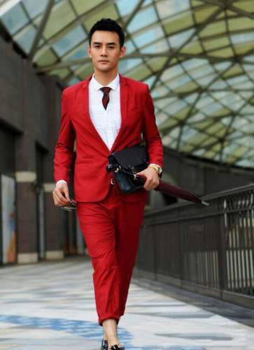 这件大红色的西服让何老师看起来皮肤略微有点黑,不过大红色的西装更有一种时尚的味道,同时还让何老师看起来更加年轻了。