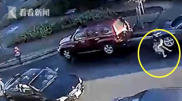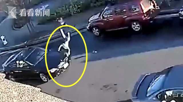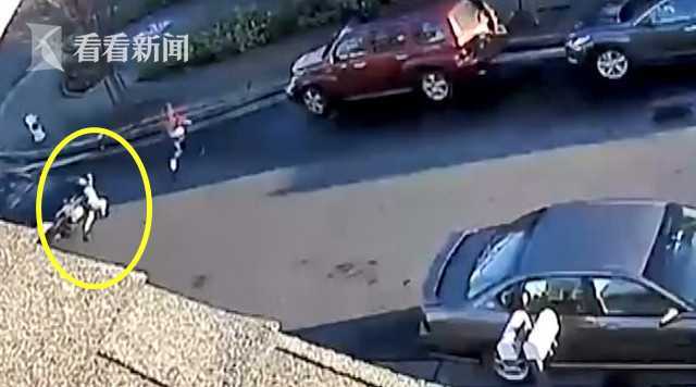惊人一幕发生了,随着小女孩一声可怕尖叫,她落在几米开外路边停靠的两辆汽车中间,之后一骨碌从地上站起,没事似的跑向同伴,一起回家了。