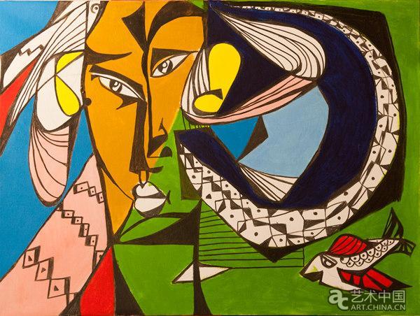 这些画不是我现在开始画的,这个风格实际上是文革以前,上世纪60年代的时候,当时我父亲在中央工艺美术学院,他主要教设计,要带一部分学生到云南,就是丁绍光他们去西双版纳。少数民族的服装和色彩一下子给他很大刺激,他在那一上手,发现跟他原来喜欢的西方现代艺术和对毕加索的崇敬很契合,而且他发现毕加索跟中国的民间艺术有很多相通的地方,所以才会有"毕加索加城隍庙"这种说法,后来大家说这是一种装饰绘画,但是从我们的角度说就是最让我们触动的。