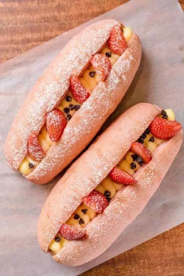 一口咬上去,草莓的清甜与卡士达酱的浓香在唇齿间迸发,面包软韧,好满足!