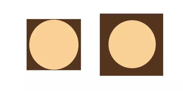 "吹蓬头发显脸小"的道理,与经典的"圆方错觉"的理论如出一辙,你认为右侧的圆形更小一些?NoNoNo,那只是被宽外缘正方形对比出的假象,真相是两个圆形是一样大的!