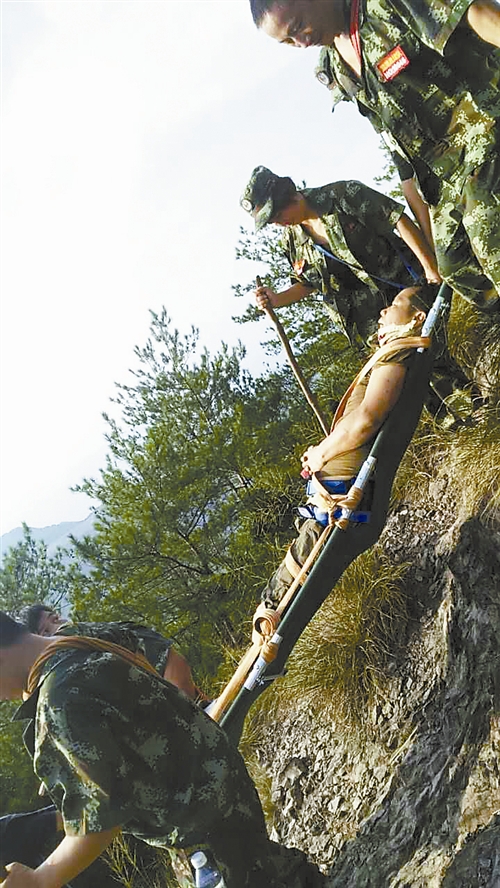 记者了解到,受伤驴友是温岭一支户外登山队的一员,当天随登山队伍来淡竹乡白刀岩攀登,在一处峭壁滚落下来,当场摔破下巴和4颗牙齿,还断了数根肋骨。意外发生后,伤者被队友从30多米高的北边峭壁拉上来,但早已动惮不得,队伍中谁也没带担架等救援装备,如何将其运送下山成了难题。