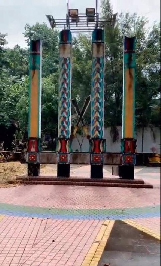 在云南景颇园中,竖起的目瑙示栋上精美繁复的雕刻装饰,不仅有日、月、宝石等,牛、犀鸟也代表着景颇族的文化图腾。而在景颇园的其他地方,也到处可以看到各种牛的雕刻、装饰,展现景颇族对牛的崇拜。