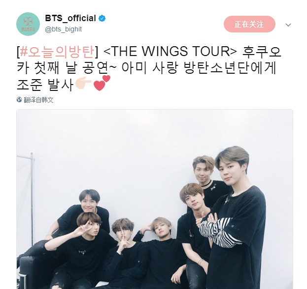 阿米的爱对防弹少年团瞄准发射ߑ�ߏ�ߒ�。另外,2017 BTS LIVE TRILOGY EPISODE III THE WINGS TOUR福冈第二日的演唱会将于明日(25日)北京时间16时举行。
