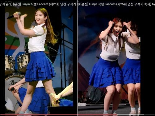 恩真穿著纯白衬衫、宝蓝色蛋糕短裙热舞,看起来青春洋溢,只是她疑似因为跳舞动作太大,加上胸垫没有固定好,在表演过程胸垫不断往下滑落,虽然她也发现了,无奈没有空档可以调整,即使中间抓紧时间把内衣往上拉,到后面还是往下滑落,不过即使如此,她还是尽全力演出,敬业态度博得网友一片称赞。