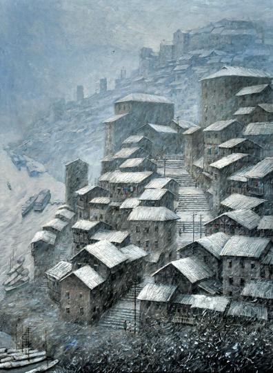 近年来,重庆因其两江汇流、依山建城的特殊地貌,吸引了众多中外游客前来探索山城奇美。此次美术作品展将重庆蜿蜒向上的石阶、横跨大江的大桥、涛涛流水等现实景观,以及画家记忆中的重庆老城吊脚楼林立的景观都一一描绘出来。