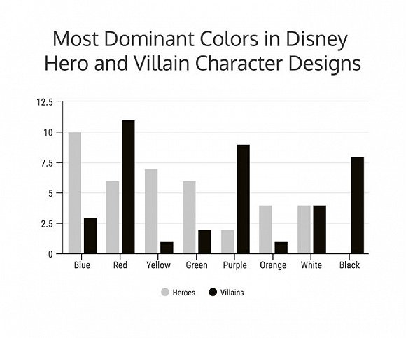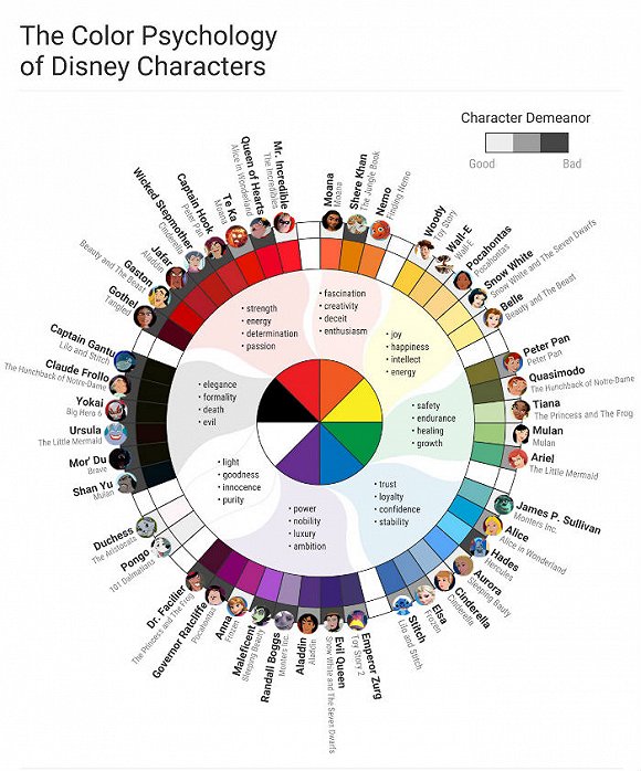 许多人都是看着迪士尼动画长大的。这些动画人物让我们了解,什么样的形象算是一个“英雄”,而一个“恶棍”的形象又是什么样。通过统计一些数据,我们显然可以找到颜色与这些角色性格之间的联系。