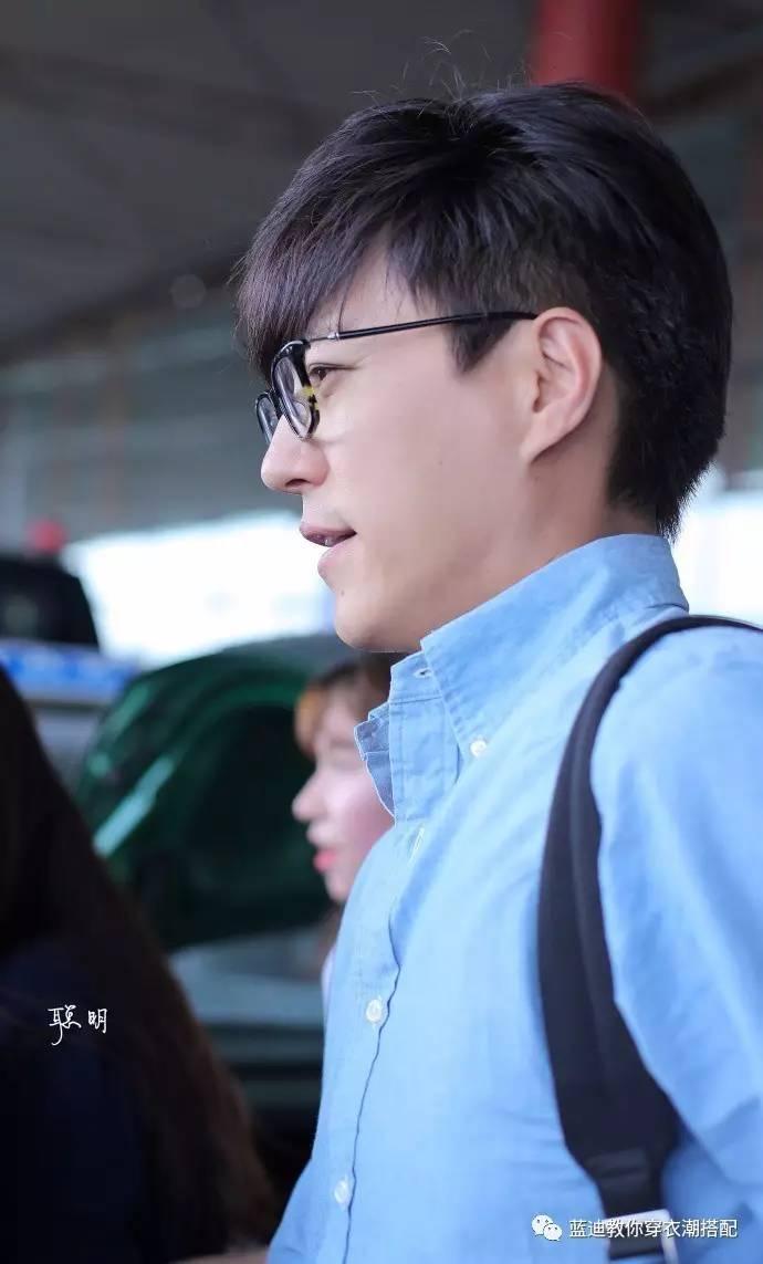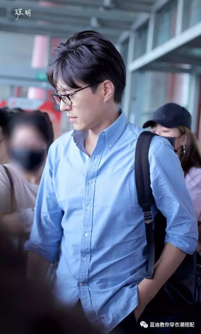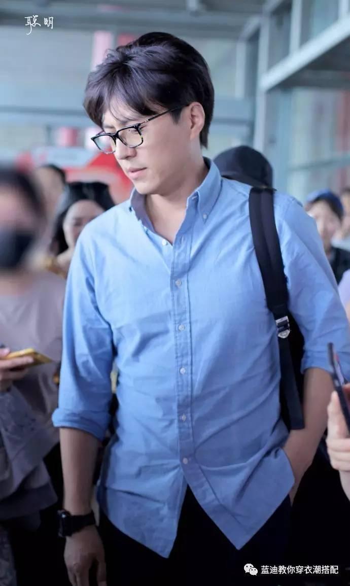 靳东北京机场街拍,一件简单的蓝色衬衫配黑裤,再配上一副再普通不过的黑框眼镜,自带的气场足够让他抛开"...