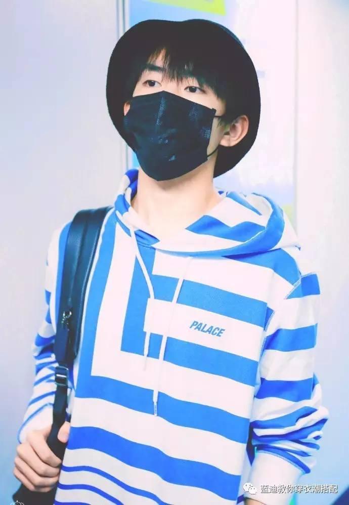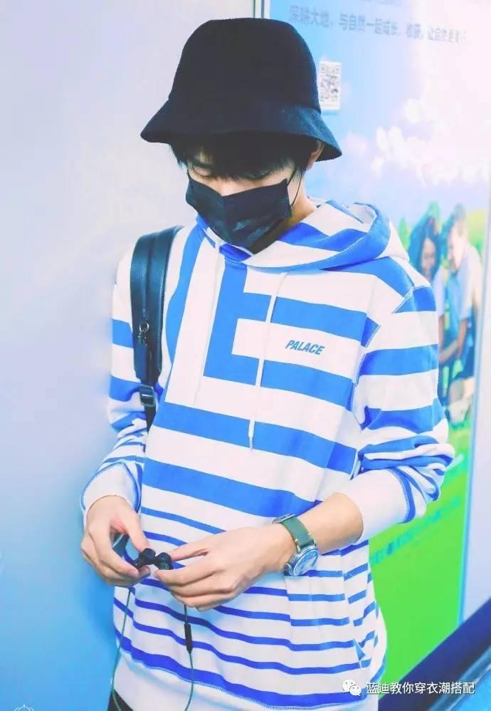 易烊千玺北京机场街拍,他身穿蓝白条纹卫衣,渔夫帽,凉鞋+长袜,时尚品味超赞,一个走在时尚界的boy~