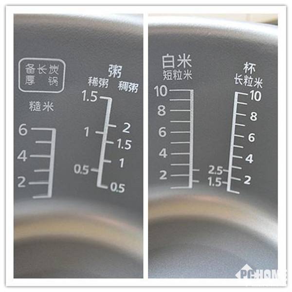 ??电饭煲的内胆很贴心设有各类功能的水位线,据说水位线上每一根小横线的位置都是松下工程师上百次实验后确定的哦,真是线线皆辛苦啊,按照他们设计的水位线加水,保准锅锅饭都是无敌的美味呢!(友情提示:一定要用自带的量杯加米哦……)