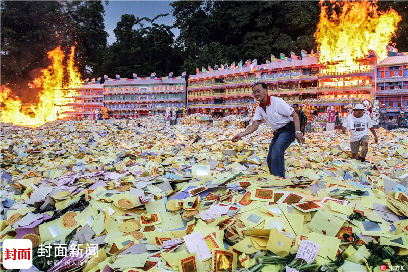 印尼华人过中元节烧香抛"冥币" 场面壮观_北京时间