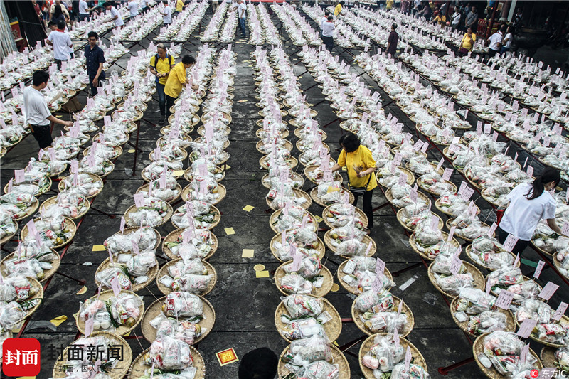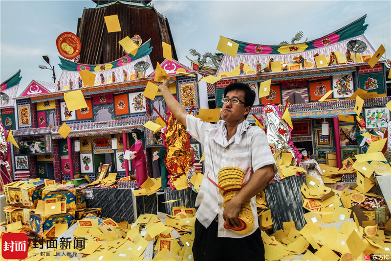当地时间2017年9月5日,印度尼西亚棉兰,为纪念中元节(鬼节),印尼华人烧香、抛撒"、摆放祭品,悼念祖先、告慰亡灵。