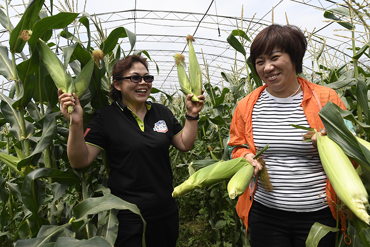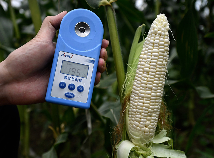 经农艺师现场检测,玉米含糖量达到19.5%。